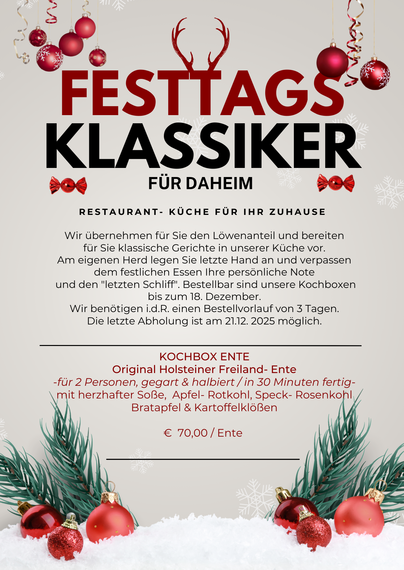 | | | Neue Speisekarte Wenn es draußen Stürmt, Regnet oder gar Schneit, Wird es Zeit für Herbstliche und Winterliche Spezialitäten. Holsteiner Spiegelkarpfen aus unseren Teichen bestellen Sie bitte vor. aktuelle Speisekarte (pdf- Download) Terminvorschau Herbst / Winter 2025 Kohl- und Steckrübenbüffet -Grünkohl ist natürlich auch mit dabei :-), Wildbuffets, Musical- Dinner, Weihnachten.... Termine Weihnachten (pdf- Download) (pdf- Download) Reservierung empfohlen ***** Spezialitäten für die kalte Jahreszeit -auf Vorbestellung- Gänsebraten, Entenbraten, gefüllte Rippe und Co. Alles, was die kalte Jahreszeit kulinarisch besonders macht. Herbst- Winter- Spezialitäten (pdf- Download) Auch in diesem Jahr: unsere Kochboxen für`s Weihnachtsfest Kochboxen Teil 1 Kochboxen Teil 2 Bestellungen bitte per E-Mail an Info@strenglinermuehle.de *********************** Bis bald ! Ihre Familie Molt und das Mühlen Team | | | | | | |